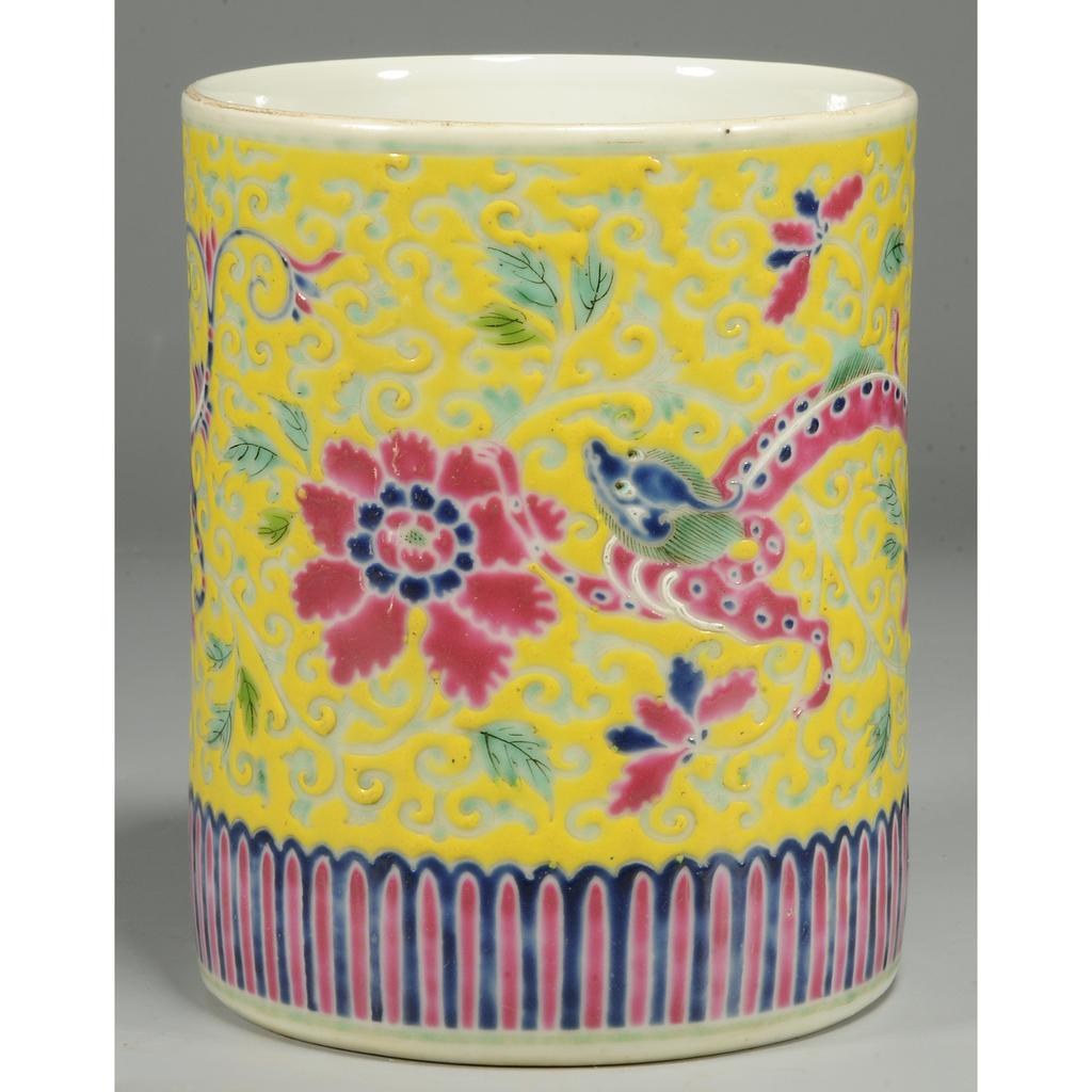 289162 清雍正 粉彩螭龙纹笔筒