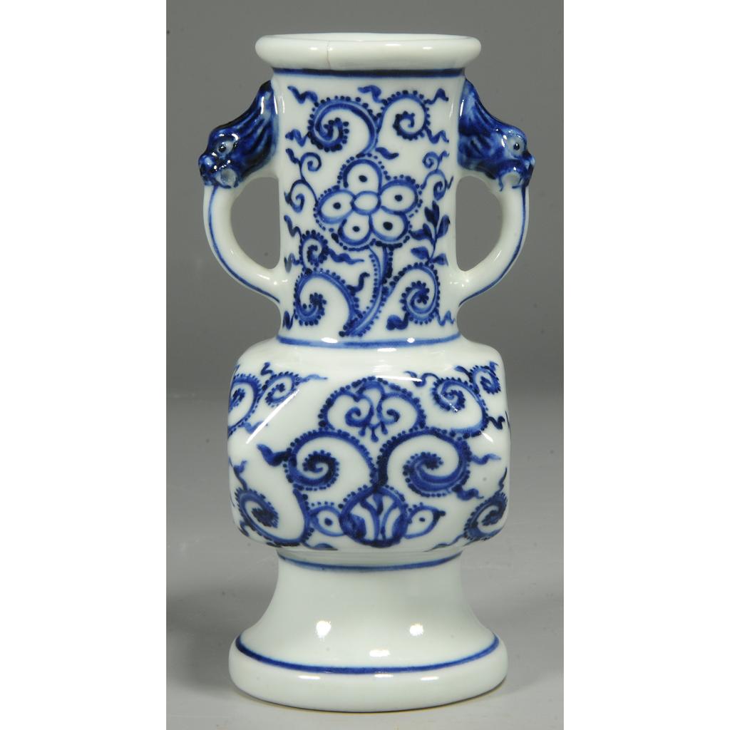 289163 清 青花花卉纹兽耳瓶