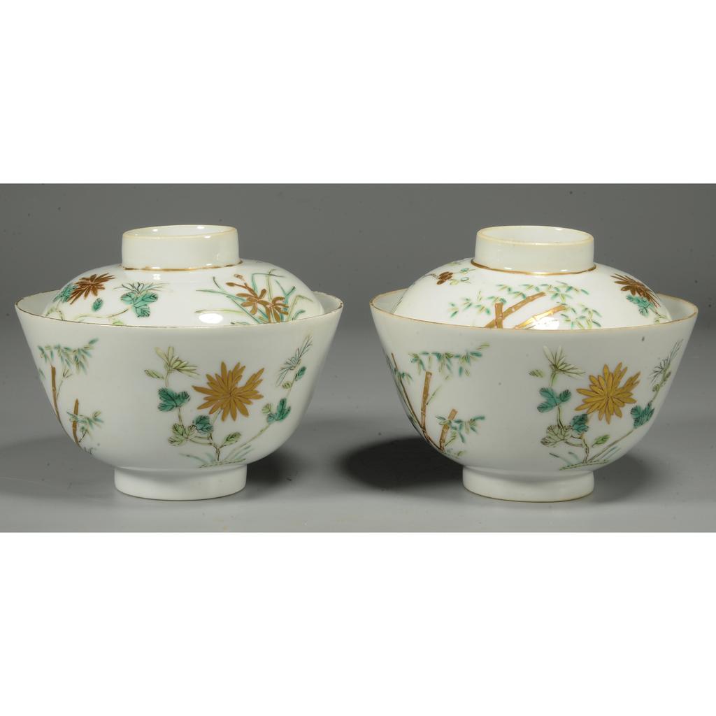 289170 清 粉彩花卉纹盖碗一对