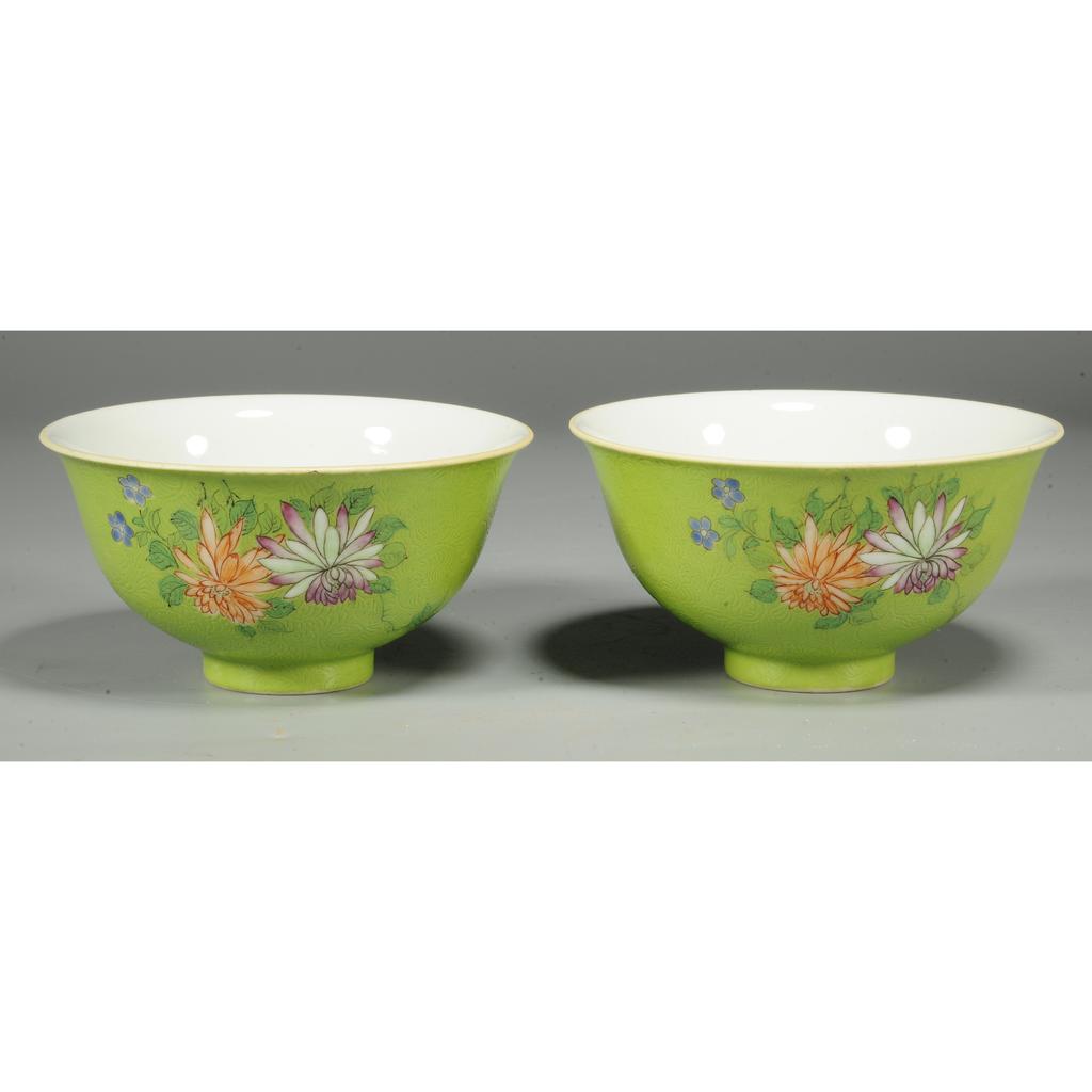 289169 清 轧道粉彩花卉碗一对
