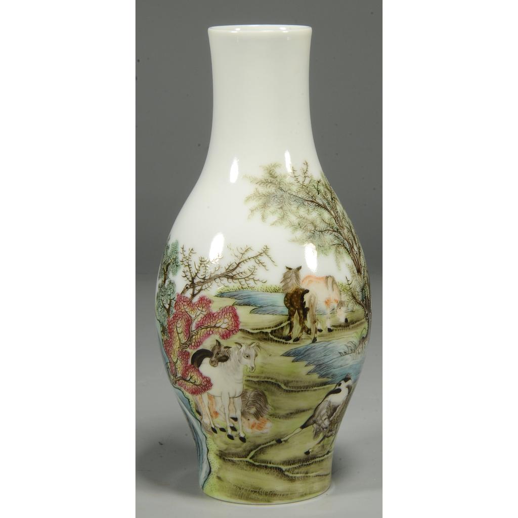289164 民国 粉彩骏马图橄榄瓶